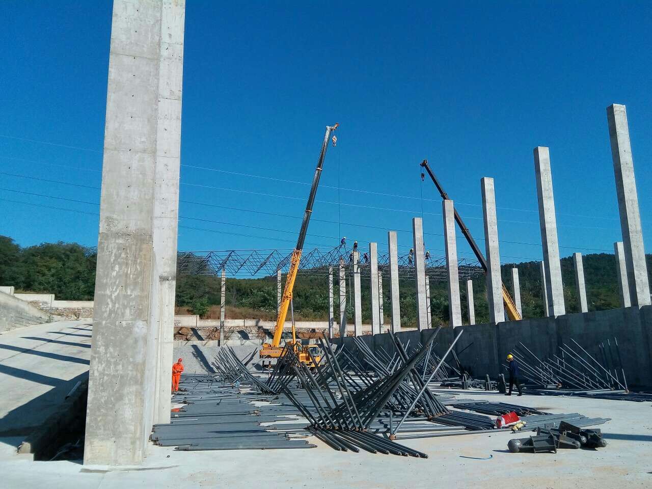 6、承建国内外工业阿里厂房、阿里展厅、阿里超市、阿里体育馆、阿里机场航站楼、阿里库房、阿里车站、阿里收费站等单层和多层钢结构、钢阿里桁架、网架(壳)阿里工程